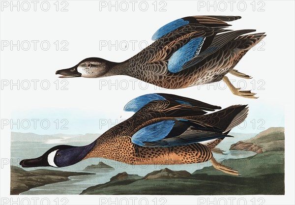 Blue Winged Teal, Anas Discors. From The Birds of America by John J. Audubon. Pub. 1827-1838 (colour lithograph)