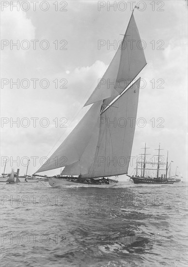 The Big Class, 186 ton sailing yacht 'Lulworth' making good speed, 1924. 'Lulworth' was designed by Herbert William White and built in 1920.