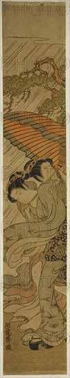 Two Young Women with Umbrella Caught in Rainstorm, c. 1771. Creator: Isoda Koryusai.