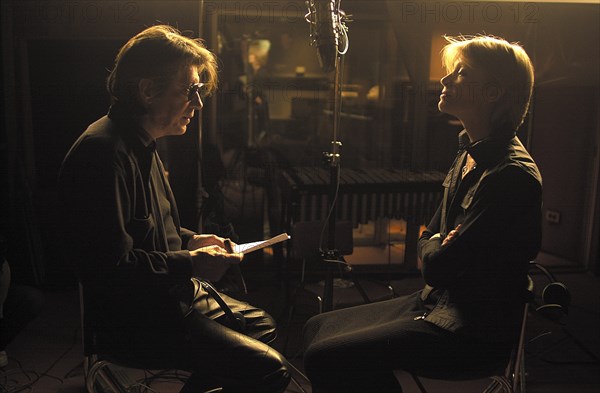 France 21e siècle Photographie Homme Femme Couple Chanteur Studio Enregistrement Répétition Micro France Musique Chanson française Contre-jour Années 2000 Chanteuse