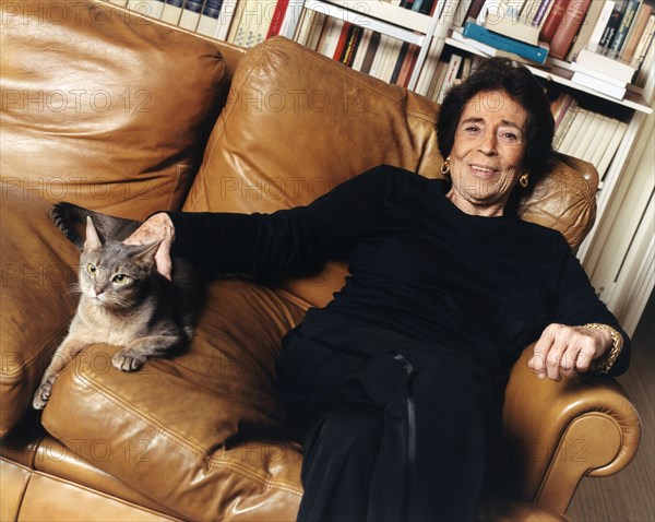21e siècle Photographie Portrait femme Presse animal domestique chat ministre canapé en cuir Politique Ecrivaine
