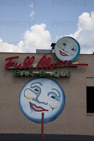 Full Moon Bar-b-que signs in Tuscaloosa, Alabama
