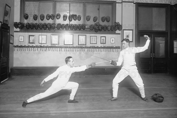 Henry Breckenridge and Hassanieu Bey Fence their way against one another in sporting competition