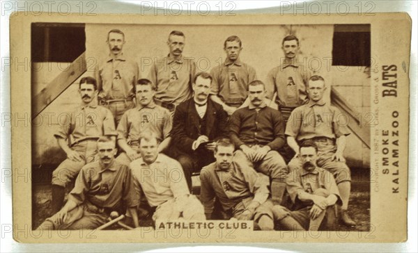 Manager and 12 players in a team portrait of the American Association's Philadelphia Athletics.