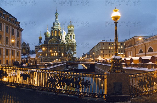 Cathedral resurrection bridge over griboyedov canal st petersburg russia