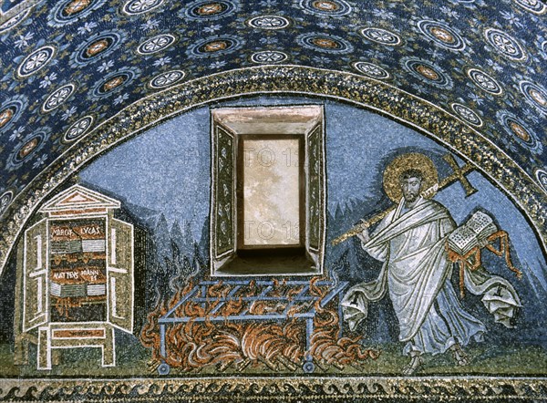 Italy. Ravenna. Mausoleum of Galla Placidia, 5th century. Mosaic. Martyrdom of of St. Lawrence. Mosaic.
