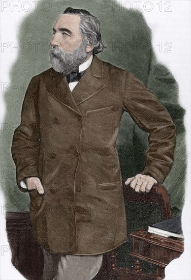 Ion Ghica (1816-1897). Romanian revolutionary, mathematician, diplomat and politician. He was Prime Minister of Romania five times. Portrait. Engraving. Colored.