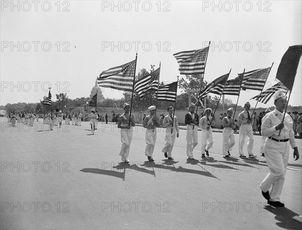 American flags on display during the annual safety parade down Constitution Avenue Washington D.C. circa 1938