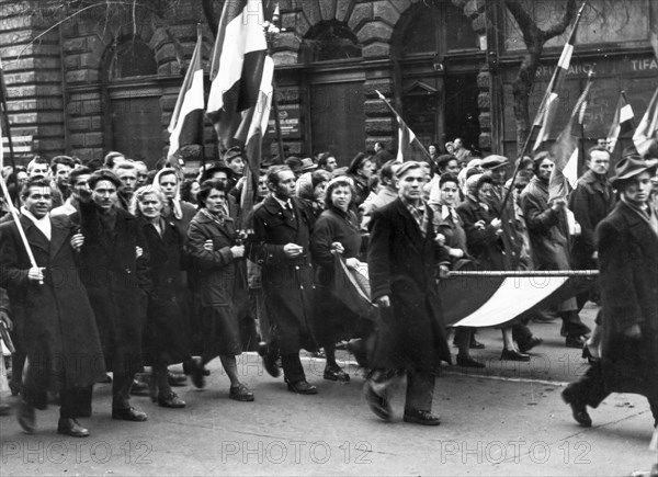 Hungarians In Demonstration Against The Russian Occupation In Budapest.