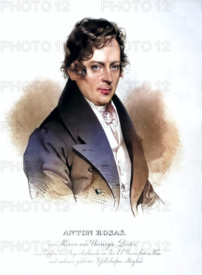 Anton Edler von Rosas, also Antonio Rosas (23, 1791 in Fuenfkirchen, Kingdom of Hungary, died May 31, 1855 in Vienna) was an Austrian physician who specialized in ophthalmology. Historical, digitally restored reproduction of an original from the 19th century.