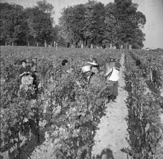 Winegrowers at grape gathering near Lake Geneva, 1962.