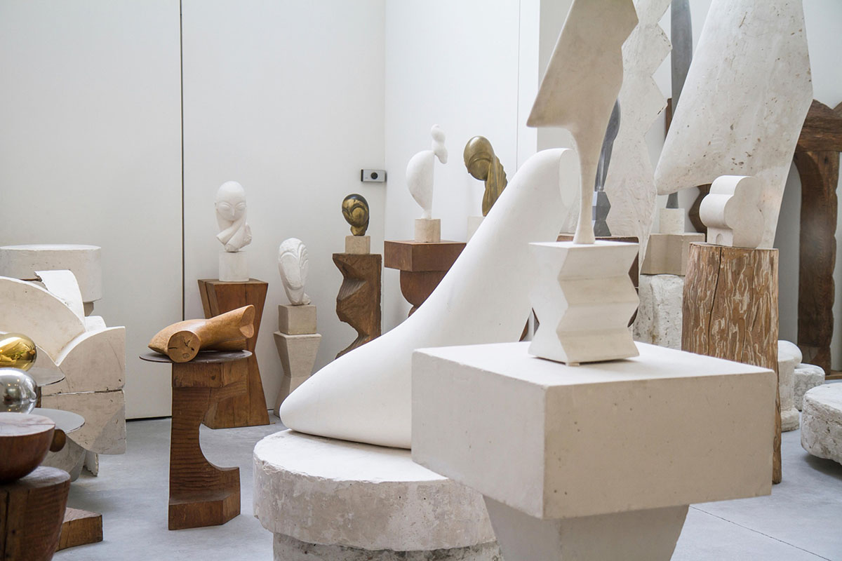 Intérieur de l'Atelier Brancusi à Paris, reconstitution fidèle de l'atelier du sculpteur Constantin Brancusi. Place Georges-Pompidou, 2015.
